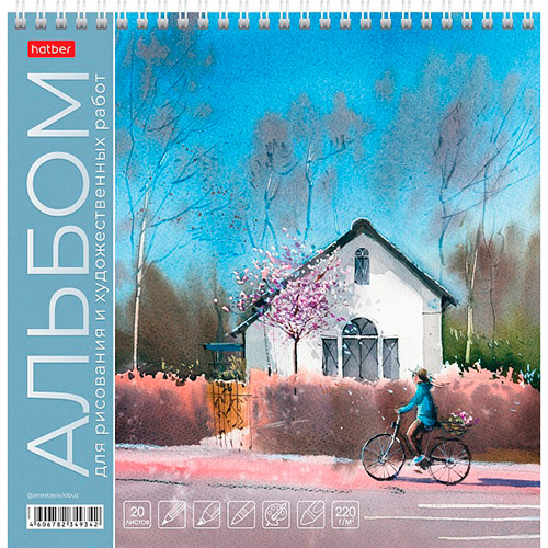 Альбом для рисования и худож.работ 20л. 220х220мм Hatber Моменты радости, 220г на спирали