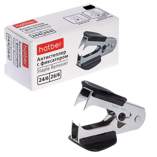 Антистеплер Hatber № 24/6, 26/6 черный с фиксатором