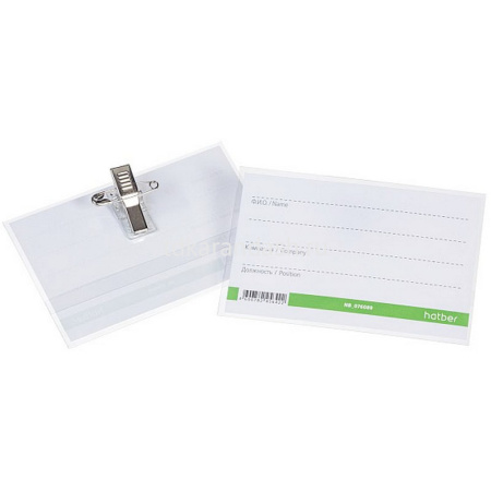 Бэдж горизонтальный 90х57мм с булавкой и клипом Hatber