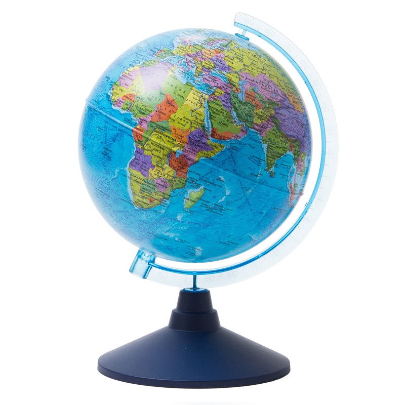 Политический глобус – отличное наглядное пособие для изучения политического устройства мира. Такой аксессуар станет хорошим дополнением к школьным учебникам и географическим картам. Его можно разместить в детской комнате или приобрести для школьного класса географии. На поверхность политического глобуса нанесены границы стран государств, их столицы и крупные населенные пункты. Страны окрашены в разные цвета для удобства ориентирования. Печать четкая и контрастная.