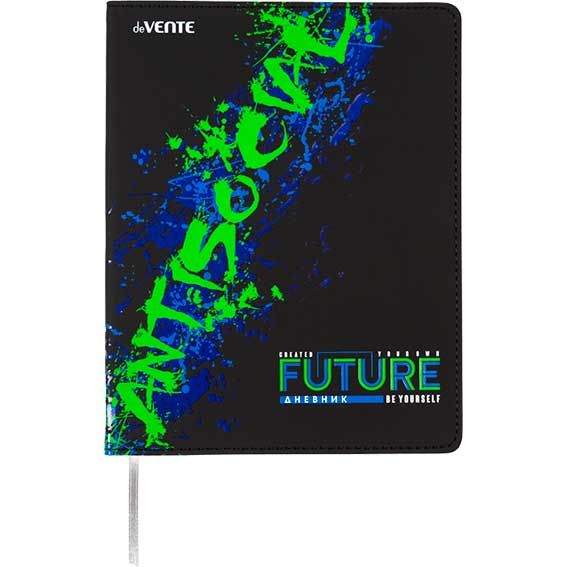 Дневник “deVENTE Label. Future” универсальный блок, 48 листов, белая бумага 80 г/м², печать в 1 краску, гибкая обложка из искусственной кожи, шелкография, отстрочка, 1 ляссе