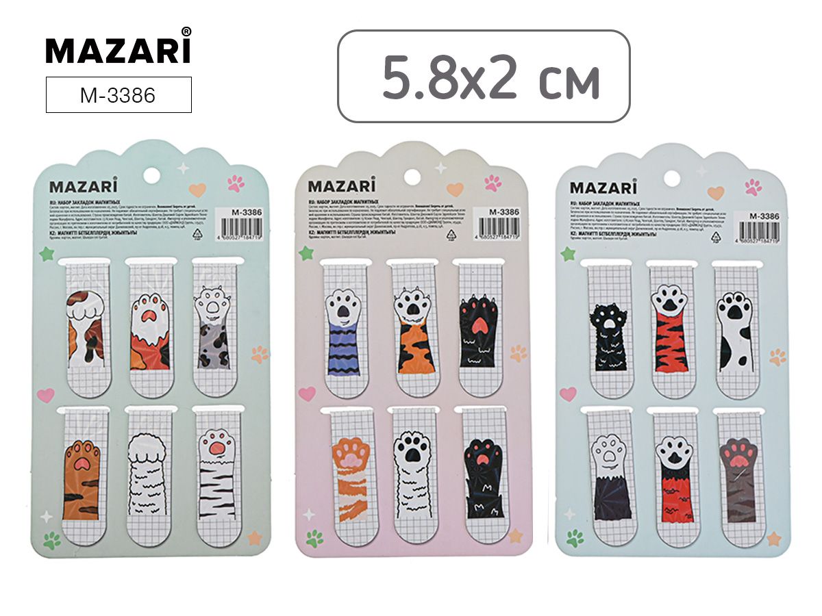 Закладки магнитные 20х58мм (набор 6шт.) Mazari ЛАПКИ