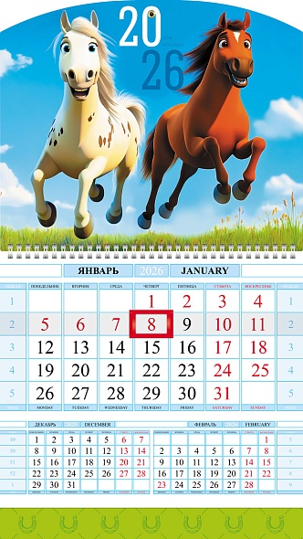 Календарь квартальный 1-блоч. на 1 гребне 2026г Соло-Люкс с вырубкой Год_Лошади
