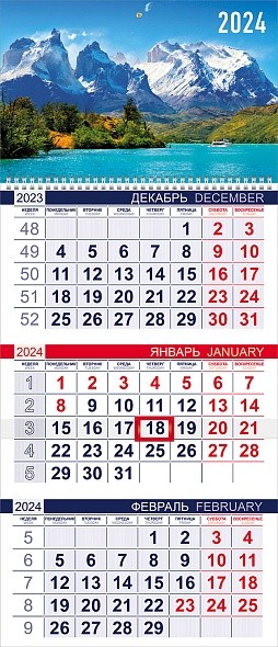 Настенный квартальный календарь 3-х блочный на 1-м гребне. Полный формат: 298х690 мм, формат постера: 298х195 мм. Постер и подложка: мелованный картон 250 гр. Блок: 298х495 мм, неразрезная сетка , 2-х красочная сине-красная печать, офсет, курсор-бегунок. Крепление: металлическое пикколо. Главное отличие календаря в том, что блок с календарной сеткой на три месяца неразрезной, что делает его более выгодным в цене. Календари ТМ Hatber российского производства отпечатаны на современном высокотехнологичном оборудовании и соответствуют стандартам качества.