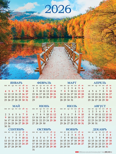 Календарь листовой А2 Hatber 2026г Золотая осень