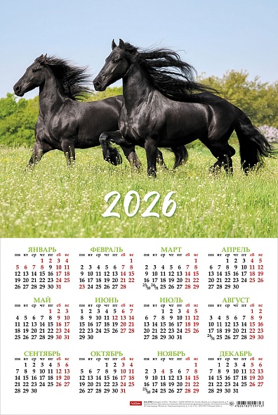 Календарь листовой А3 Hatber 2026г Год Лошади
