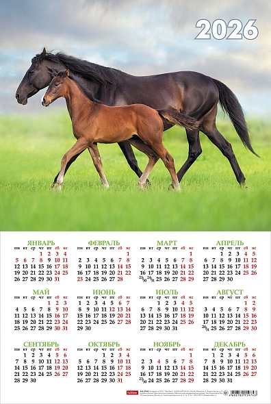 Календарь листовой А3 Hatber 2026г Год Лошади1