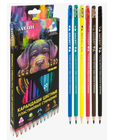 Карандаши цветные deVENTE Triolino Erase 24 цв. пластиковые, с ластиком