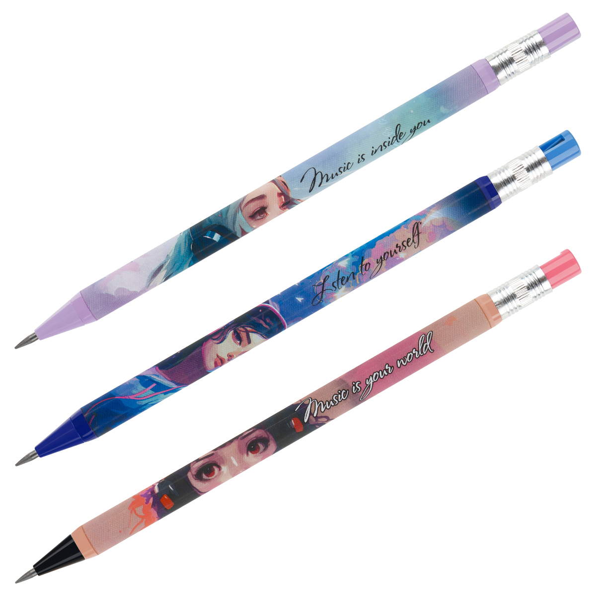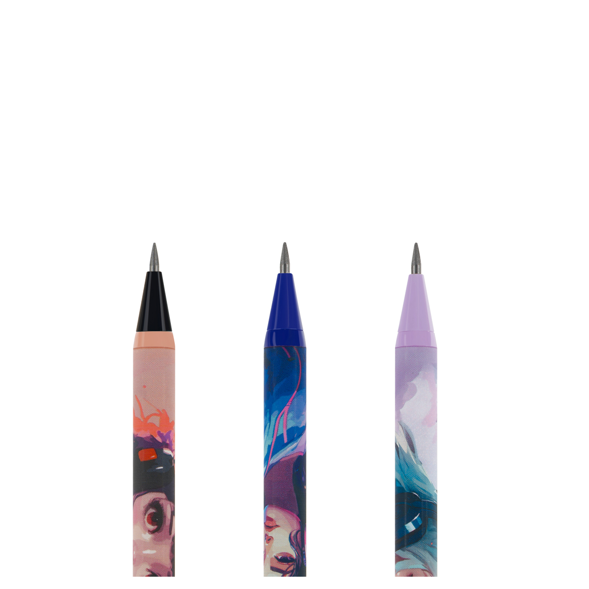 Механический карандаш Kawaii от MESHU — универсальный инструмент для учёбы или творчества. Мотивационные надписи в дизайне корпуса вдохновят фанатов аниме на новые шедевры. Стильные яркие рисунки нанесены при помощи высококачественной термотрансферной печати. Шестигранный пластиковый корпус выполнен в приятном на ощупь покрытии soft-touch. Точилка для грифеля вверху карандаша сделана в виде ластика. Любителям рисовать или делать записи карандашом не придется постоянно его подтачивать. Карандаш удобно брать с собой благодаря тому, что наконечник легко убирается. Он не сломается и не испачкает подкладку пенала. Творчество или учёба станут проще и продуктивнее. Карандаши упакованы в пластиковую тубу по 24 штуки. Набор карандашей состоит из трёх цветов: фиолетовый, розовый и голубой.