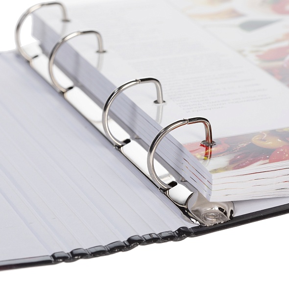 Книга для записи кулинарных рецептов А5 формата. Количество листов: 80. Обложка: твердая. Скрепление: кольца. Внутренний блок: индивидуальный, офсет 80 г/кв., 5 цветных разделителей. Книга содержит полезную информацию о мере и массе продуктов, основные правила сервировки стола и этикета приема пищи. Блюда распределяются по категориям: салаты, супы, горячие блюда, десерты и выпечка, консервирование. Каждый раздел начинается с цветного вкладыша, на котором изображено вкусное блюдо и приложен рецепт его приготовления. Внутренний блок поделен на два поля: для списка ингредиентов и способа приготовления блюда. Основное преимущество данной книги заключается в том, что хозяйка может самостоятельно определить последовательность разделов, а также подшивать свои рецепты и фотографии любимых блюд.