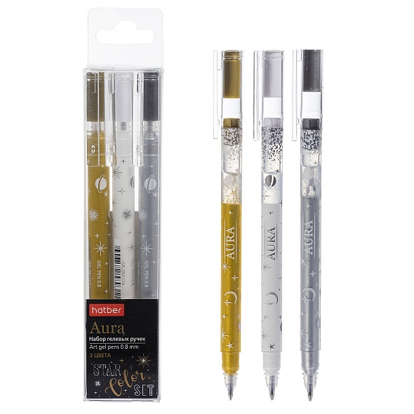 Набор ручек гелевых 3цв. Hatber Aura (золото, серебро, белая)
