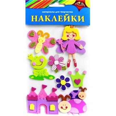 Набор для творчества. Наклейки из мягкого пластика. В наборе объемные фигуры из мягкого пластика EVA, фигуры 2-х или 3-х слойные с печатью на каждом слое и дополнительными эффектами. Каждая фигурка имеет клеевой слой. Фигурки размещены на пленке размером 11 х 16 см. В каждом наборе 8 – 12 наклеек на одну тему.