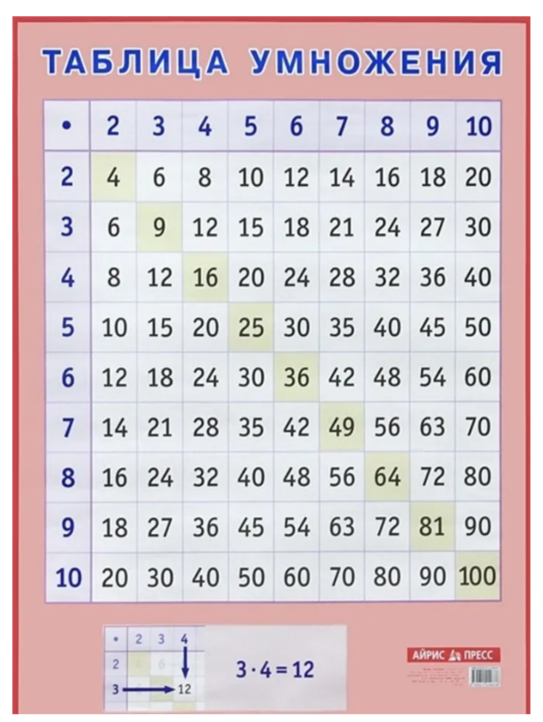 Плакат представляет собой красочно оформленную таблицу умножения. Может использоваться со всеми действующими учебниками математики для начальной школы.