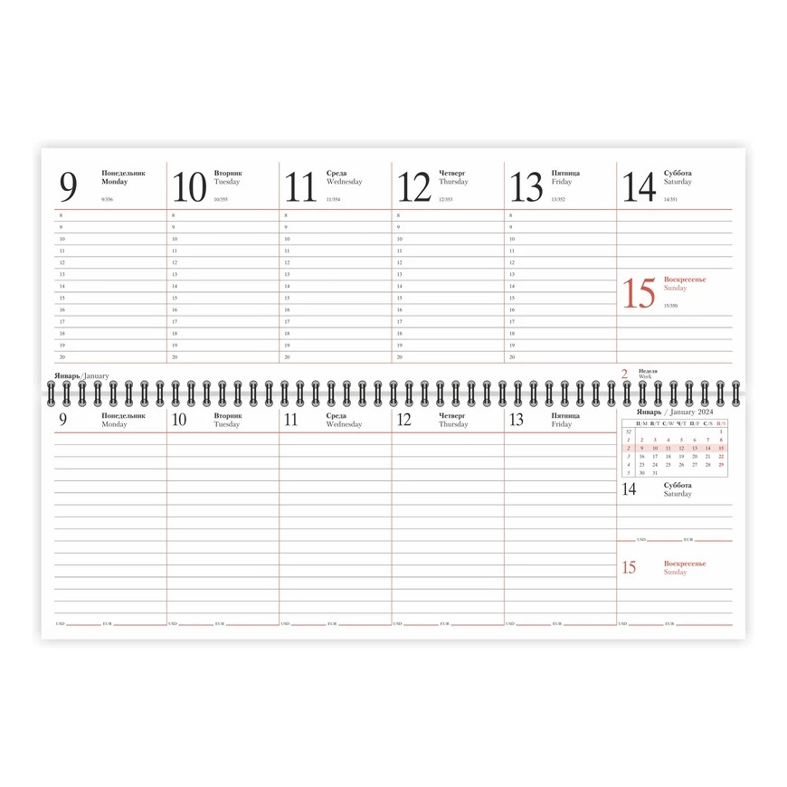 Планинг датированный 144х298 мм с твердой обложкой из искусственной кожи, в классическом синем цвете, станет верным спутником на весь 2025 год. Крепление гребень позволяет легко раскрывать его на 360°. Блок состоит из 64л и выполнен из белого офсета высокой белизны, плотностью 70 г/м². Удобное ежедневное планирование по часам и место для заметок помогут учесть все детали. Календарь на текущий месяц на развороте позволяет быстро просмотреть даты, не перелистывая страницы. Подходит под любой вид персонализации, что позволит сделать планинг индивидуальным и стильным подарком.