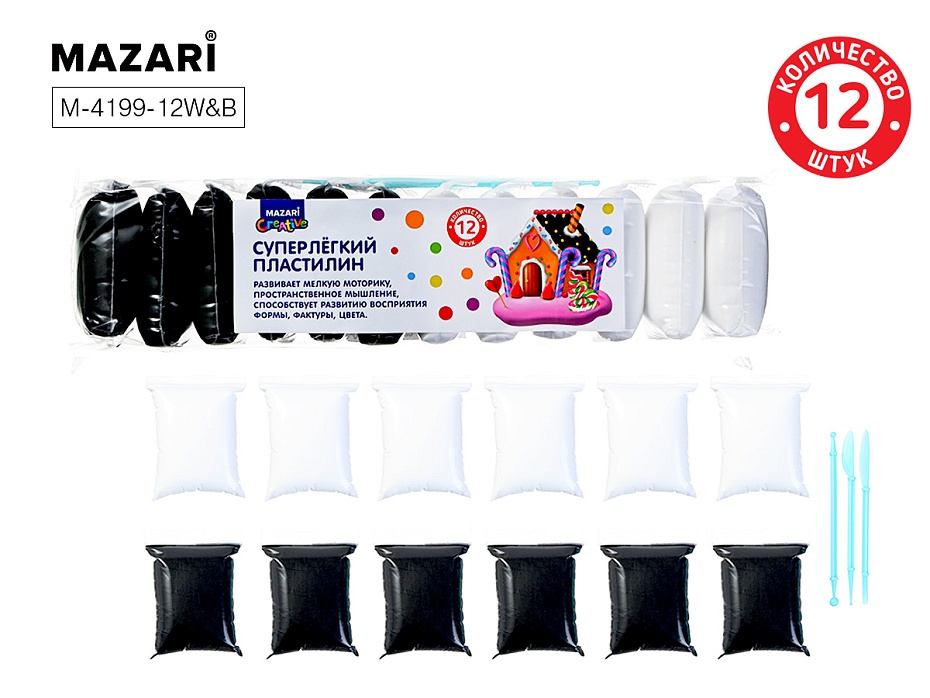 Пластилин воздушный Белый+Черный 156г Mazari суперлёгкий