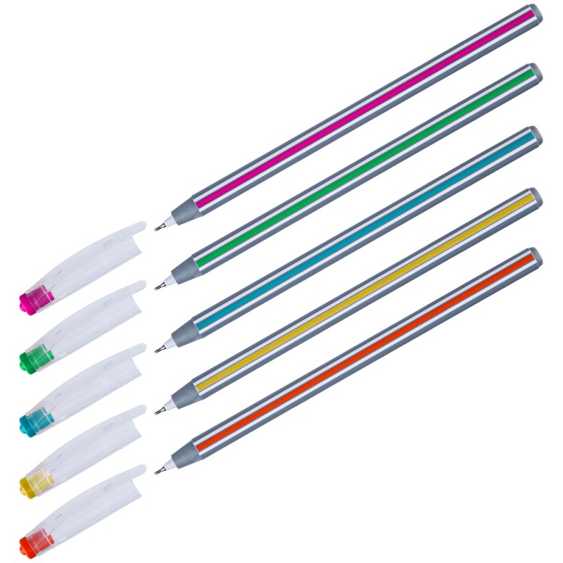 Шариковая ручка с синими чернилами на масляной основе и трехгранным корпусом ассорти. Специальные чернила пониженной вязкости и пишущий узел 0,6 мм обеспечивают мягкое и комфортное письмо, а также ровную тонкую линию 0,3 мм. Цвет чернил – синий. Ручка упакована в картонную коробку по 50 шт.