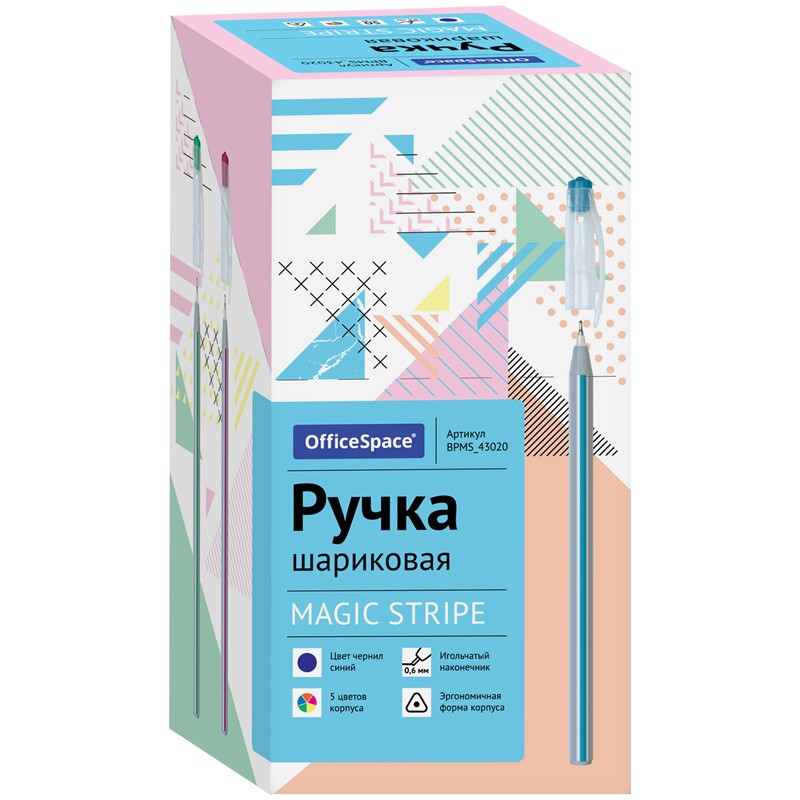 Ручка шариковая OfficeSpace Magic stripe, 0,6мм синяя