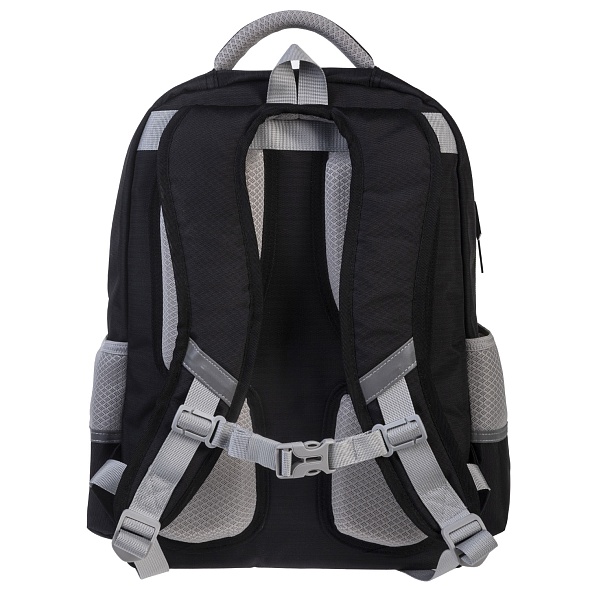 Вместительный удобный рюкзак для начальной и средней школы. Два больших отделения (основное с плавающей перегородкой), супер спинка с эргономичными подушечками, противоскользящей сеточкой и системой вентиляции. Широкие S-образные, регулируемые по высоте, лямки снижают нагрузку на позвоночник, нагрудный (съемный) ремешок с защелками надежно фиксирует рюкзак в самом удобном положении и не дает ему болтаться при ходьбе. Рюкзак изготовлен из высококачественного полиэстера с водоотталкивающим покрытием и легко чистится. Глубокие боковые карманы для бутылочки или термоса, два больших передних кармана на молнии для пенала, ланчбокса или других крупных предметов, дополнительный карман на молнии на переднем кармане подойдет для хранения важных мелочей, которые должны быть всегда под рукой. Дно рюкзака дополнено пластиковой вставкой – учебники не будут провисать, пластиковые ножки предусмотрены для защиты от грязи и влаги. Удобная мягкая ручка и петля для подвеса. Светоотражающие элементы со всех сторон. Вес 770-810г