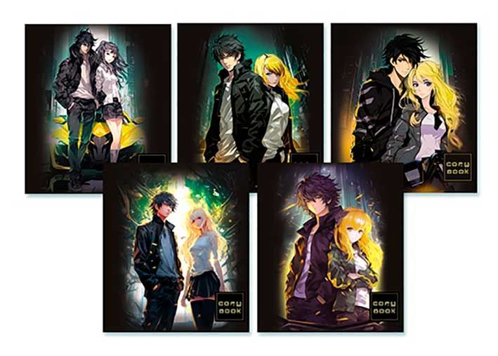 5 дизайнов в серии. Общая тетрадь 48 листов, клетка. Формат А5. (202 х 165 мм). Внутренний блок – высокачественная, белая, офсетная бумага. Плотность 60 гр/м2. Блок – голубая клетка – 5 х 5 мм, поля красного цвета. Обложка – мелованный картон, полноцветная печать, с защитным ВД лаком.