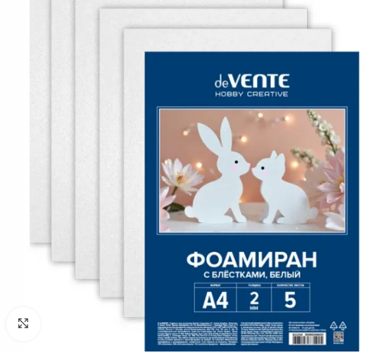 Фоамиран А4 deVENTE HOBBY CREATIVE 5л. 2мм белый с блестками