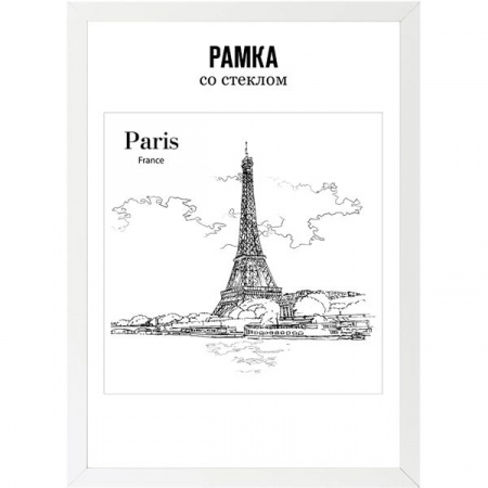 Рамка из МДФ 40×60 см, формат A2, профиль 30×9 мм, акриловое стекло, задняя панель – переплетный картон, с креплением для подвеса, белая, в термоусадочной пленке