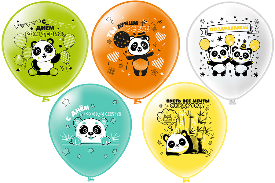Шары воздушные С Днём Рождения! Веселые панды 12"