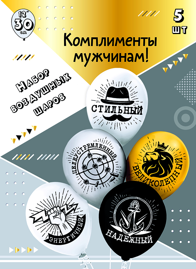 Шары воздушные 12", КОМПЛЕКТ 5шт. Комплименты для него!