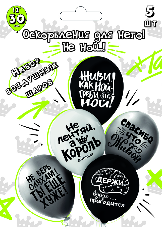 Шары воздушные 12", КОМПЛЕКТ 5шт. Оскорбления для него. Не ной..
