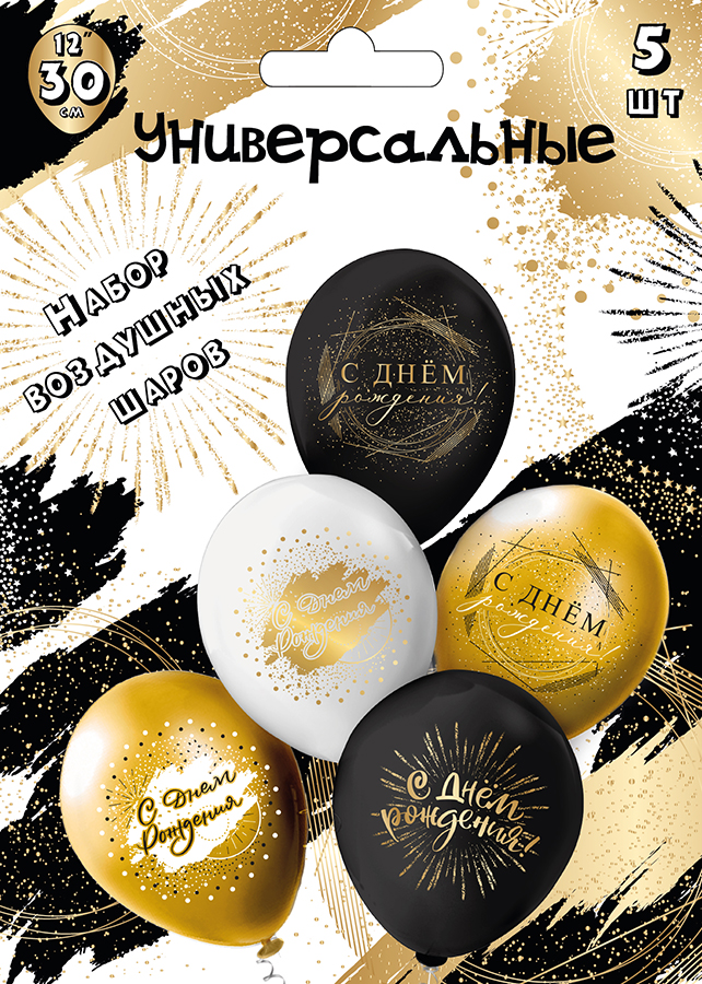 Шары воздушные 12", КОМПЛЕКТ 5шт. СДР! Универсальные