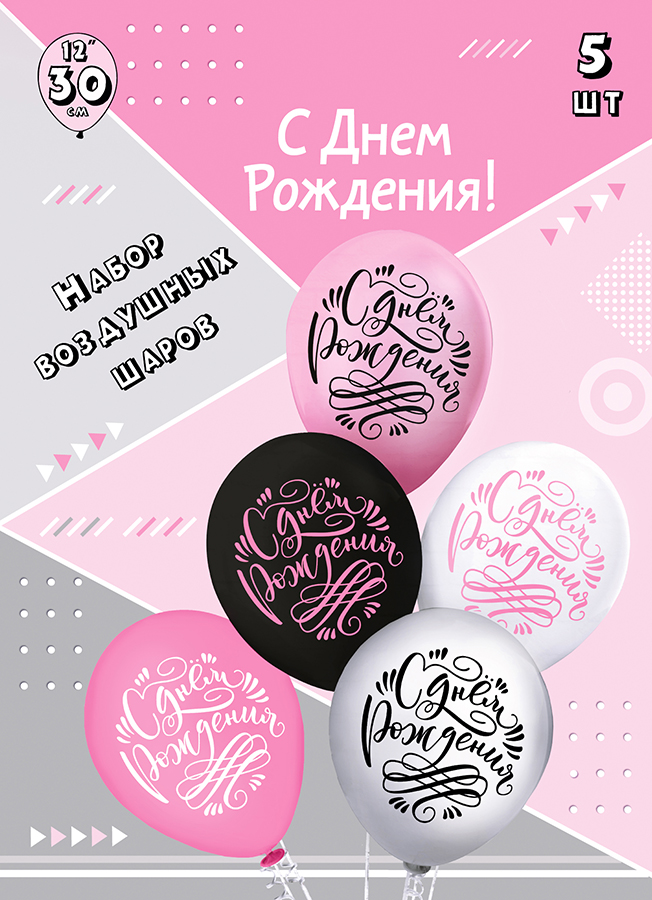 Шары воздушные 12", КОМПЛЕКТ 5шт. СДР!