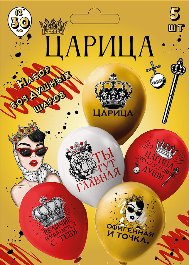 Шары воздушные 12", КОМПЛЕКТ 5шт. Царица!