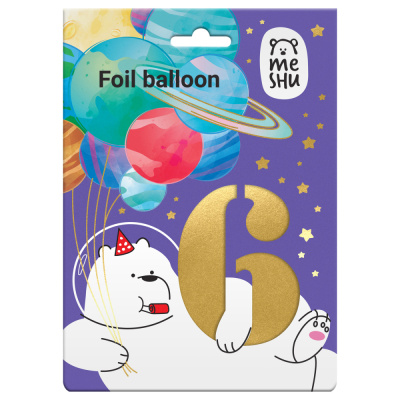 Шар фольгированный MESHU золото ЦИФРА 6 40"