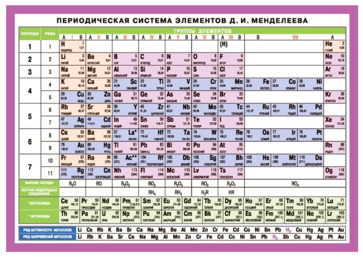 Шпаргалка Периодическая система элементов Менделеева Д.И. АЙРИС