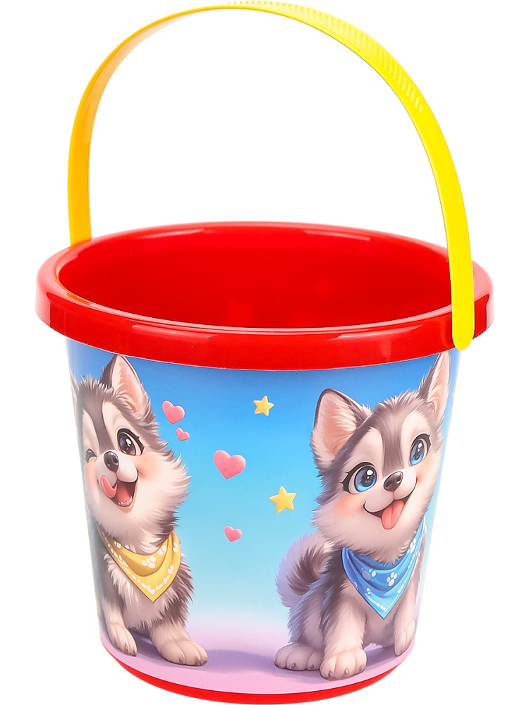 Ведро №8 с изображением весёлых щенков привлечёт внимание малышей и родителей. Идеально для хранения игрушек, конфет или как элемент декора детской комнаты. Обьем:0,85 л.