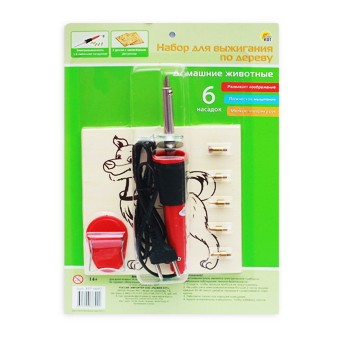 Познакомьте Вашего ребёнка с техникой выжигания по дереву! Данная серия содержит все необходимое для новичка, просто выберете набор по вкусу и немного помогите маленькому художнику создать свой шедевр. Несмотря на доступность и простоту, занятие этим древнейшим искусством поможет раскрыть творческий потенциал, а также развить воображение и художественные навыки. Процесс выжигания довольно прост – накалите электровыжигатель до необходимой температуры и медленно ведите по контуру рисунка, используя для удобства различные насадки, входящие в состав набора.